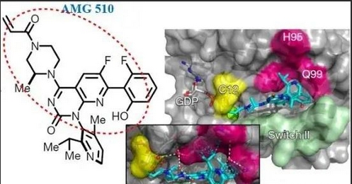 作用机制:通过不可逆结合KRAS G12C突变蛋白的半胱氨酸残基,将其锁定在失活状态,阻断肿瘤细 胞信号传导通路,抑制肿瘤生长。